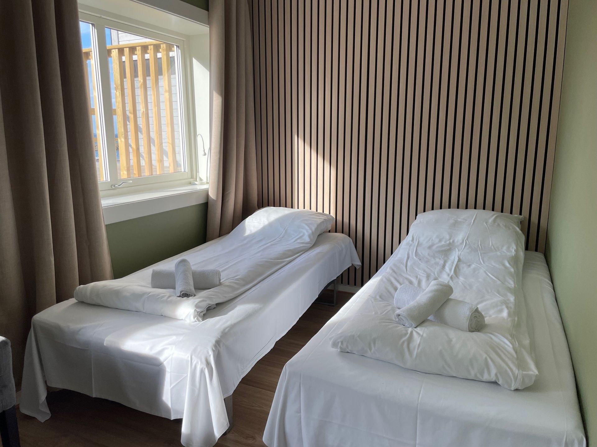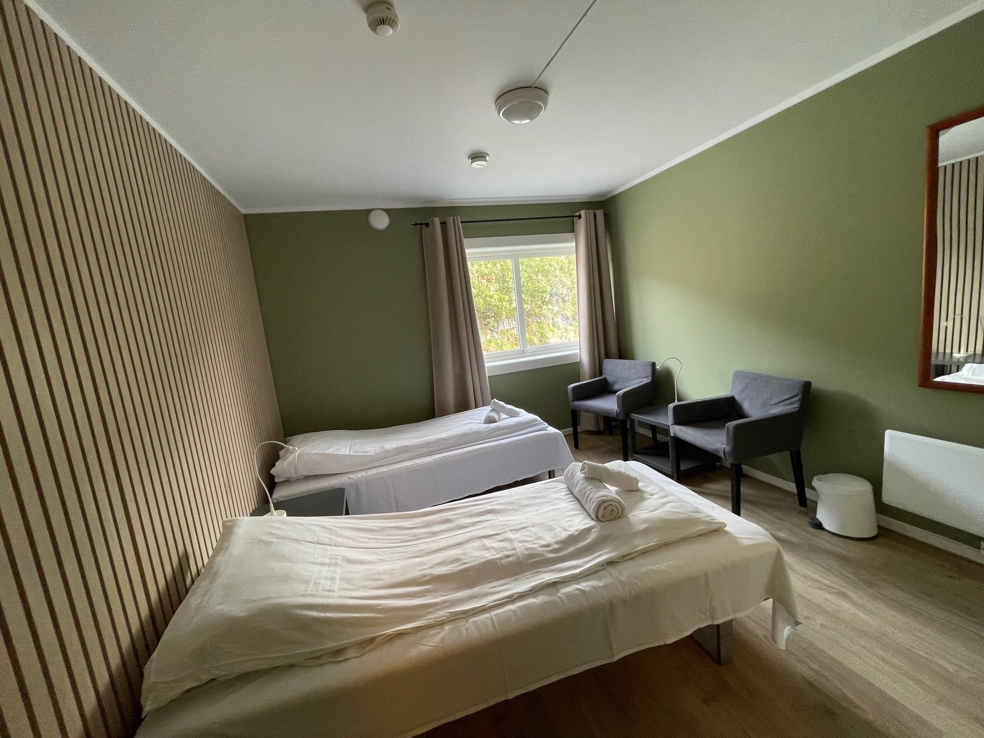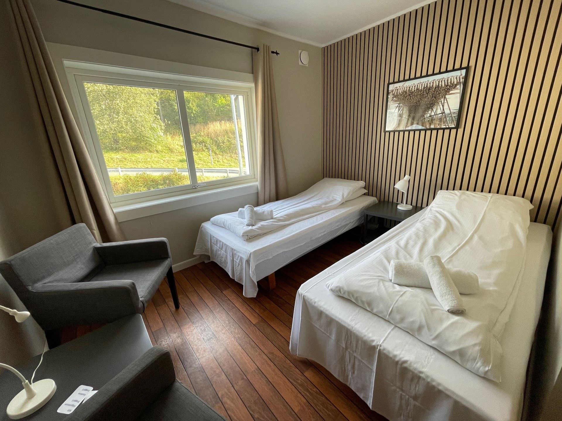 Tremannsrom i romklyngen "Barentshavet" med utsikt mot havet.