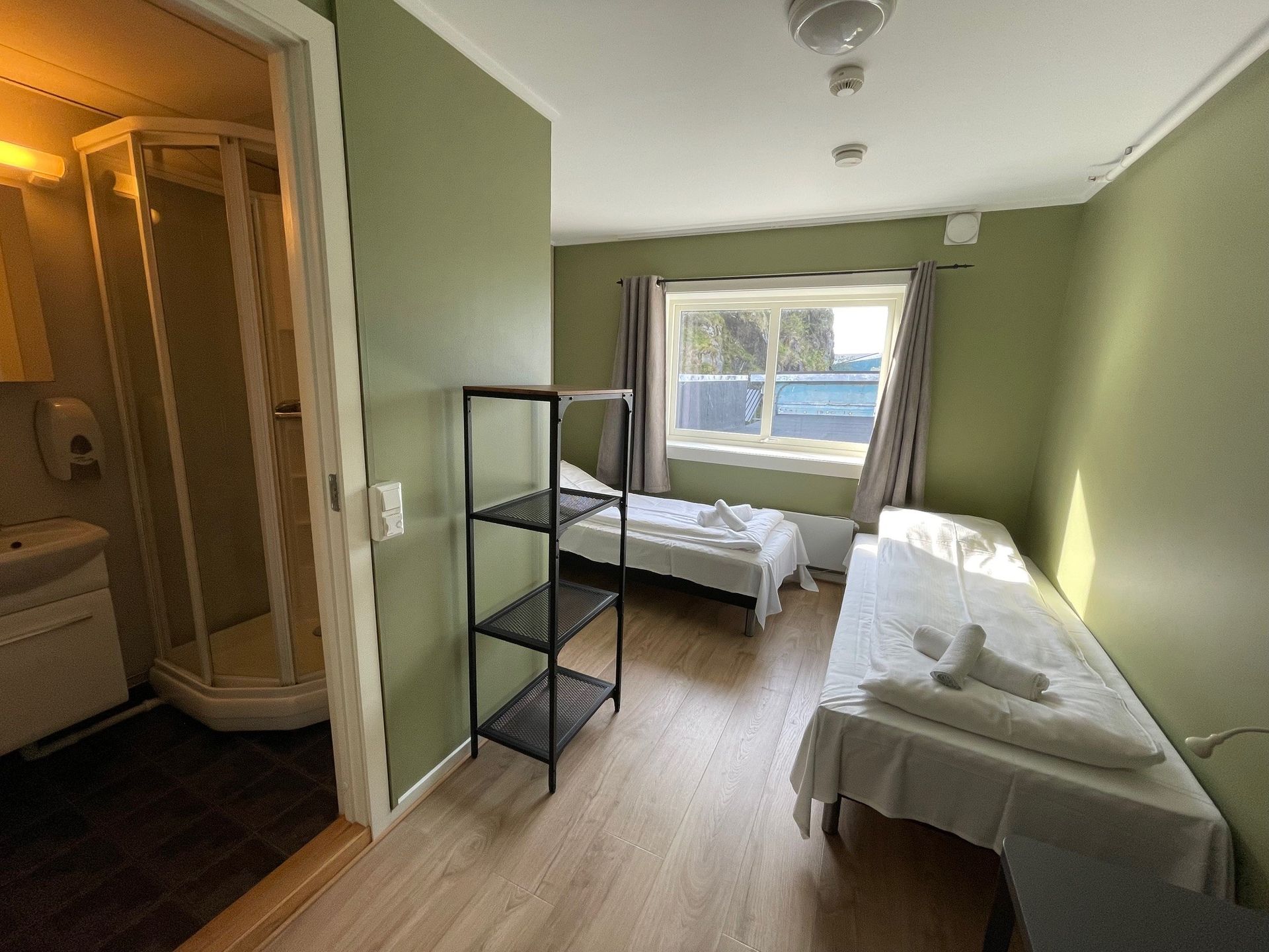 Tomannsrom i romklyngen "Barentshavet" med utsikt mot veien.