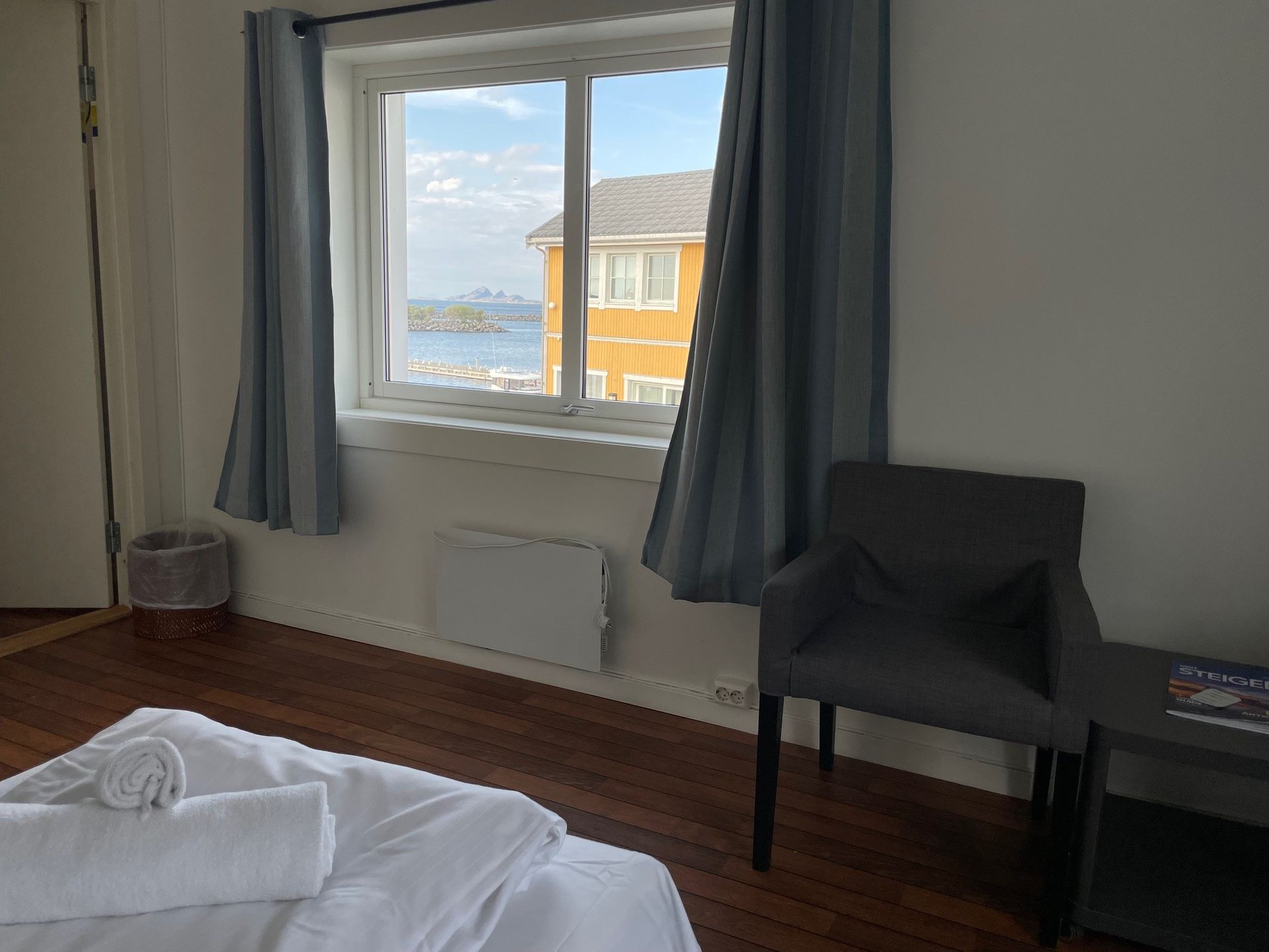 Flott leilighet med havutsikt og tilgang til takterrasse med utsikt over båtene og hele Lofotveggen.