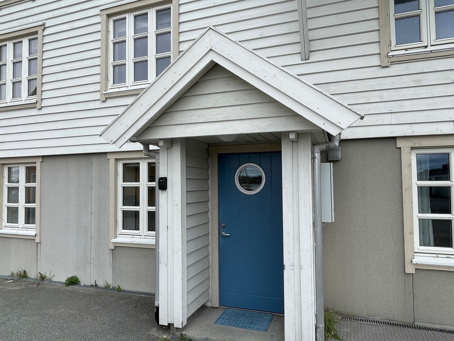 Fin leilighet med tilgang til takterrasse med utsikt over båtene og hele Lofotveggen.