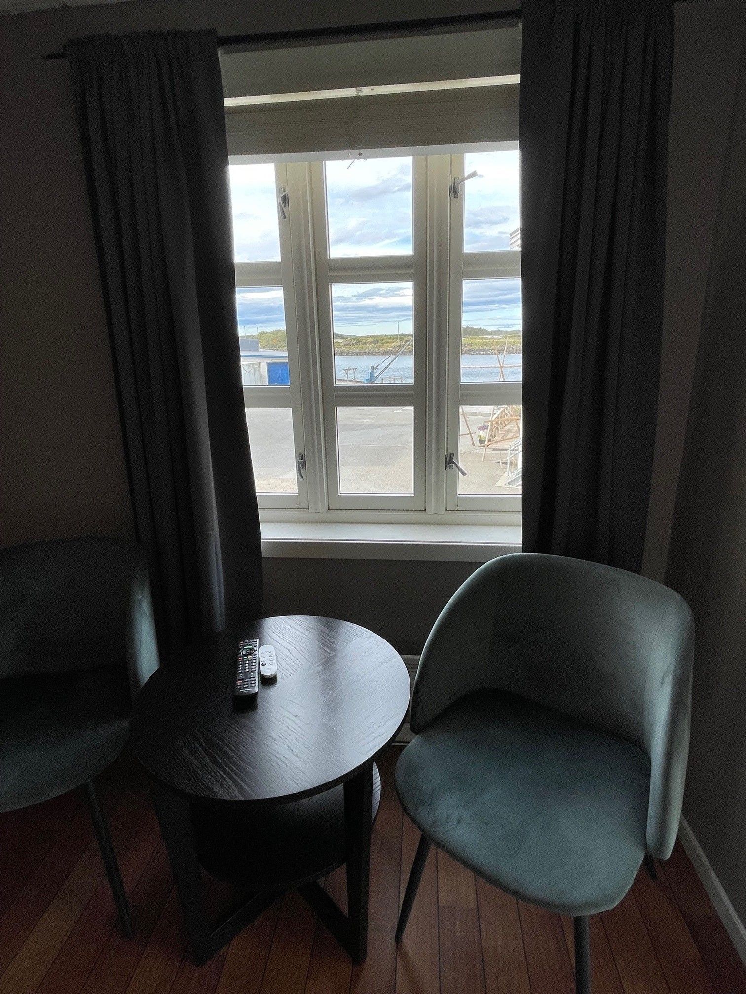 Tremannsrom i romklyngen "Feskarflåten" med utsikt mot havet.